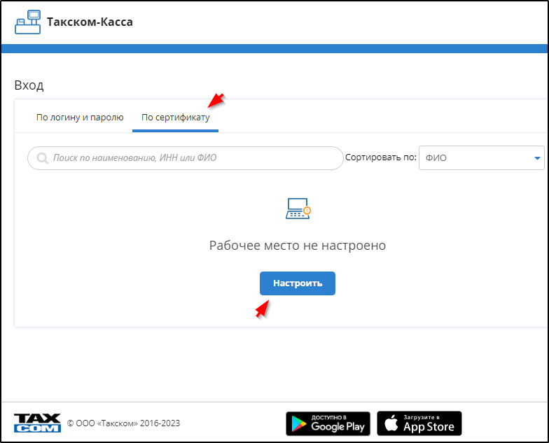 • Открыть страницу входа в кабинет "Такском-Касса".